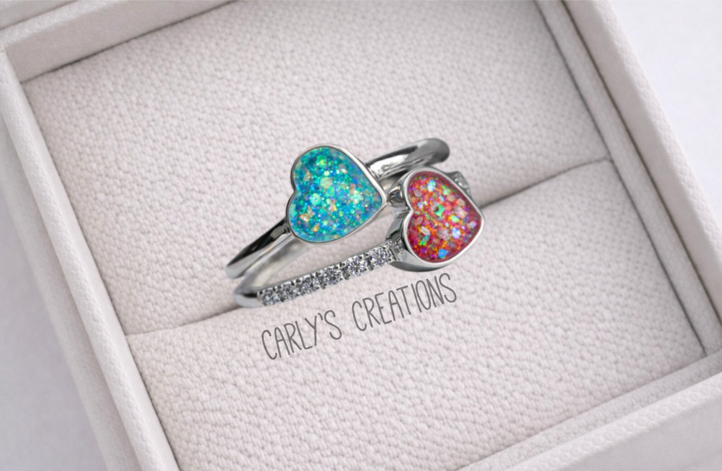 Double love heart memorial ring